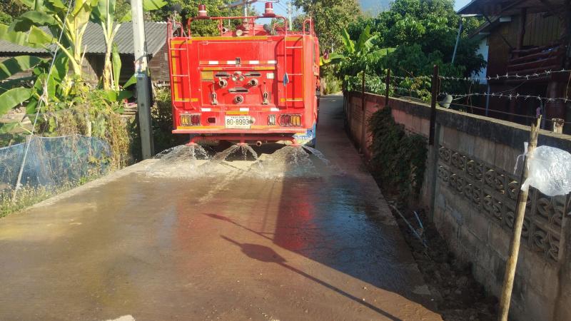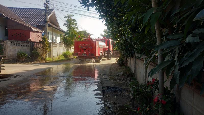 ส่งน้ำอุปโภคบริโภคให้แก่ประชาชนบ้านใหม่เหนือ หมู่ที่ 2 และรดน้ำถนนภายในหมู่บ้าน