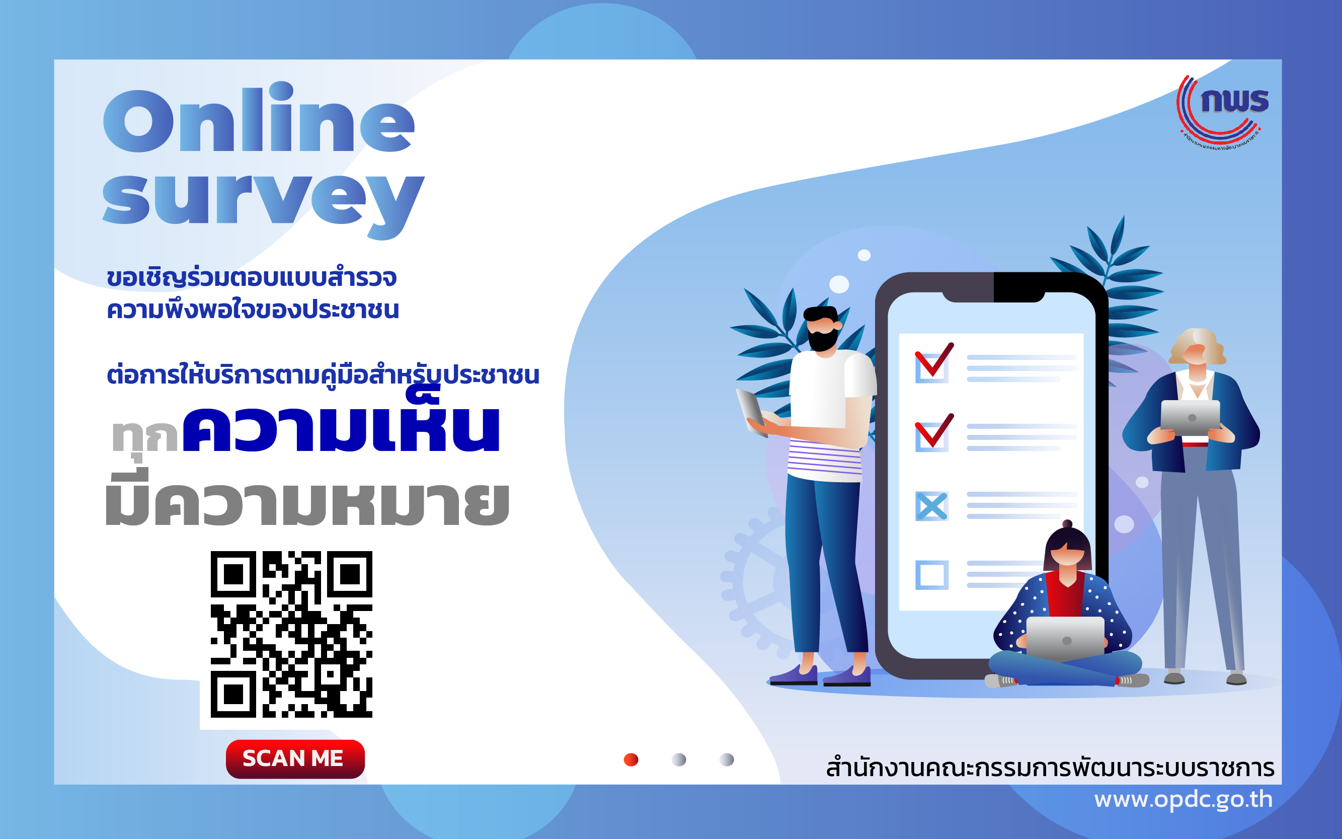 ขอเชิญร่วมตอบแบบสำรวจความพึงพอใจของประชาชนต่อการให้บริการตามคู่มือสำหรับประชาชน