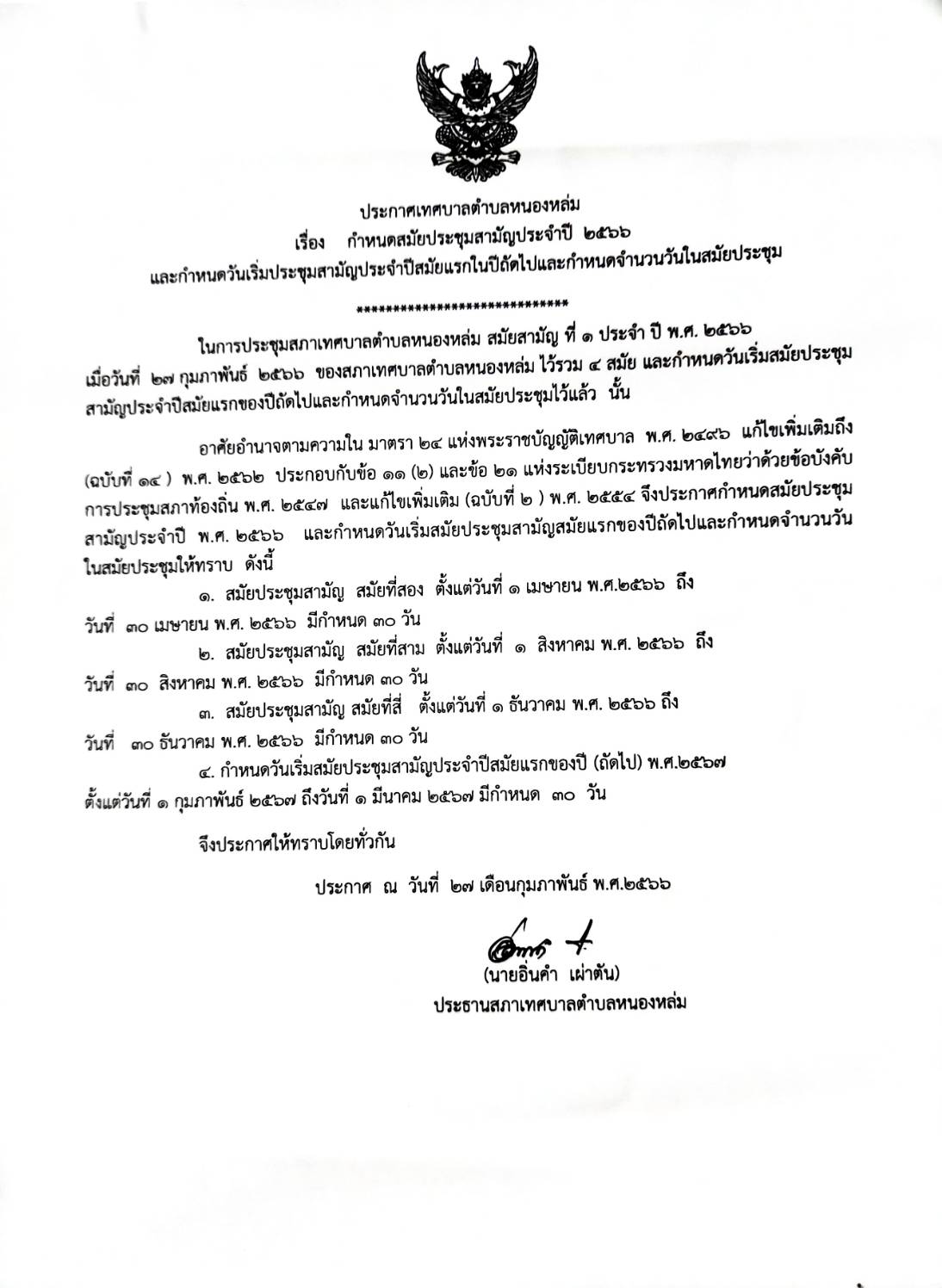 กำหนดสมัยประชุมสามัญ สมัยสามัญ ที่ 1 ประจำปี 2566