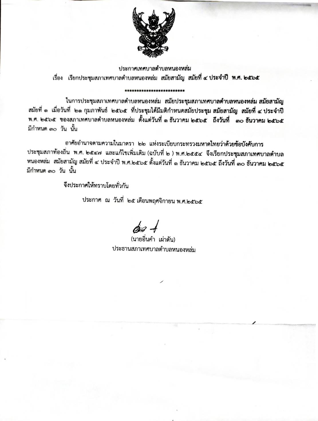 ประกาศเรียกประชุมสภาสมัยสามัญ สมัยที่ 4 ประจำปี 2565