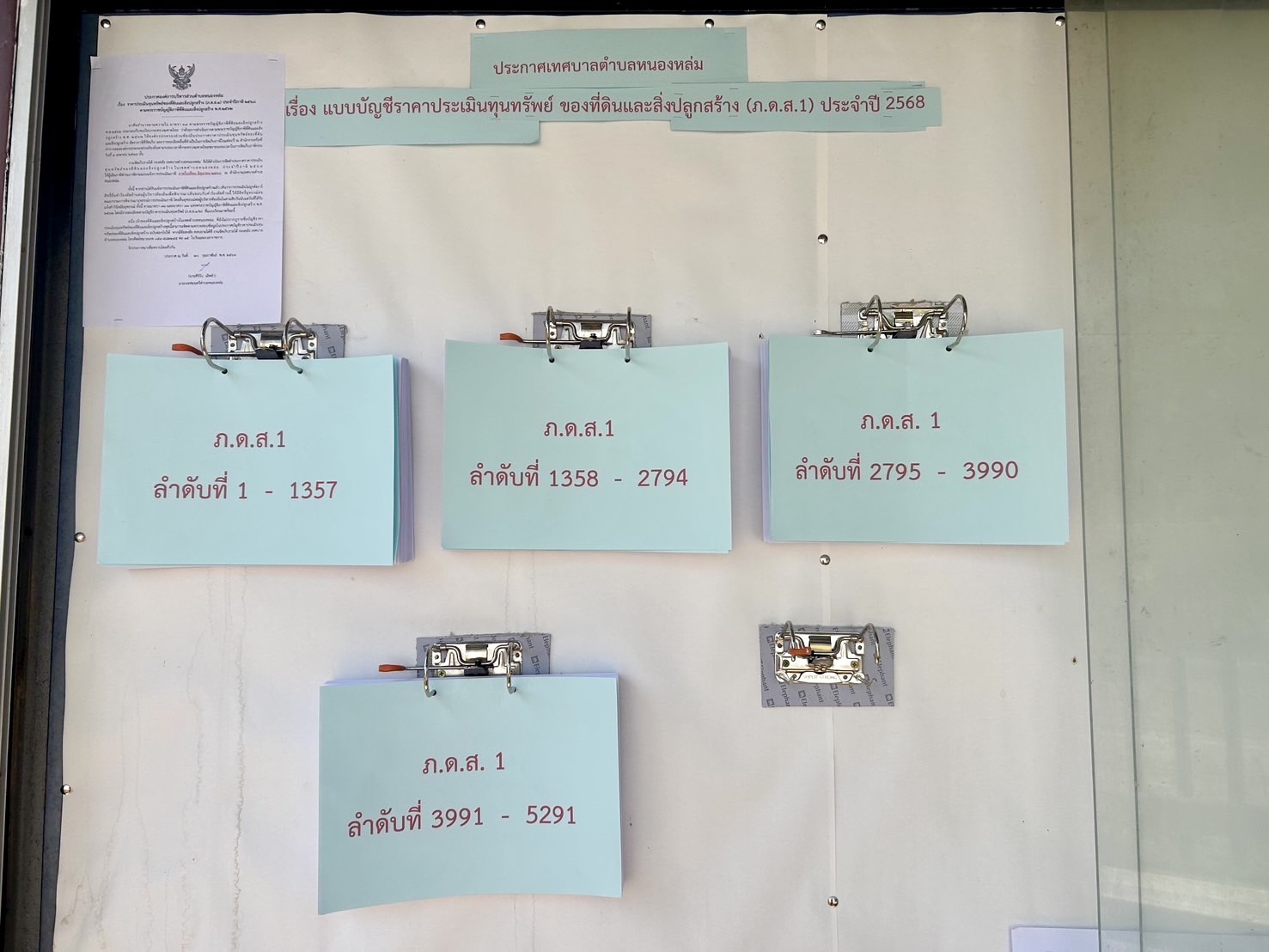 ประกาศราคาประเมินทุนทรัพย์ (ภ.ด.ส.1) เทศบาลตำบลหนองหล่มออกแล้ว นะคะ สามารถตรวจสอบได้ที่ลิ้งก์ด้านล่าง หรือสามารถทักมาสอบถามได้ที่ไลน์งานภาษีเทศบาลตำบลหนองหล่มได้ค่ะ