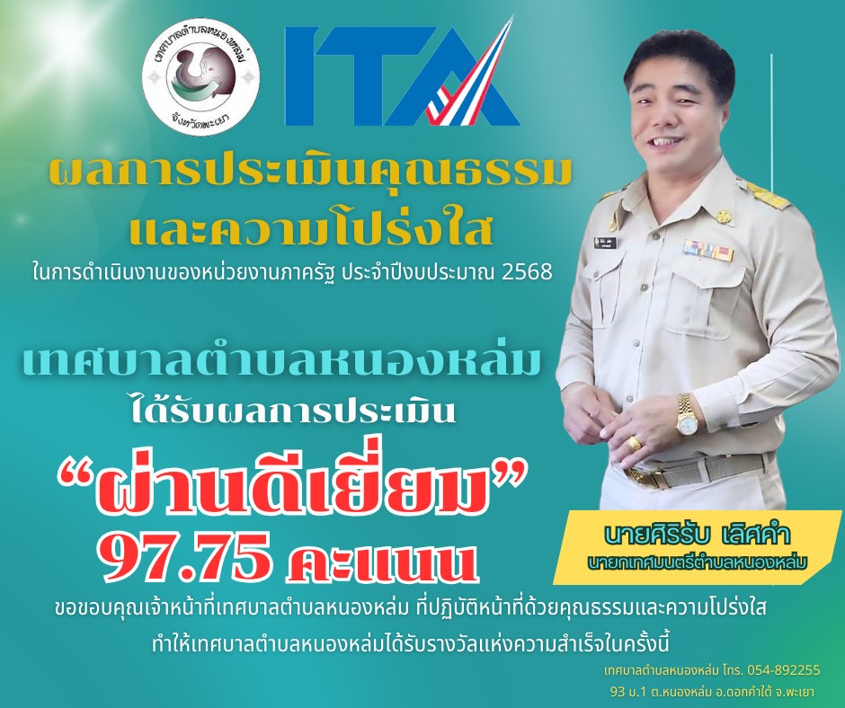 เทศบาลตำบลหนองหล่ม อำเภอดอกคำใต้ จังหวัดพะเยา ได้ระดับผลการประเมิน